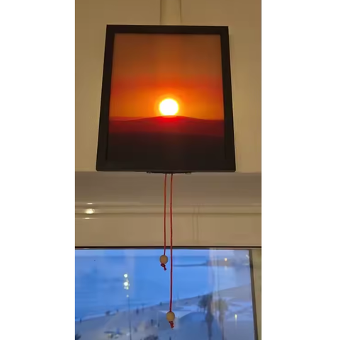 Der Mechanismus bewegt die Sonne sanft auf und ab und simuliert so einen echten Sonnenaufgang und Sonnenuntergang.
